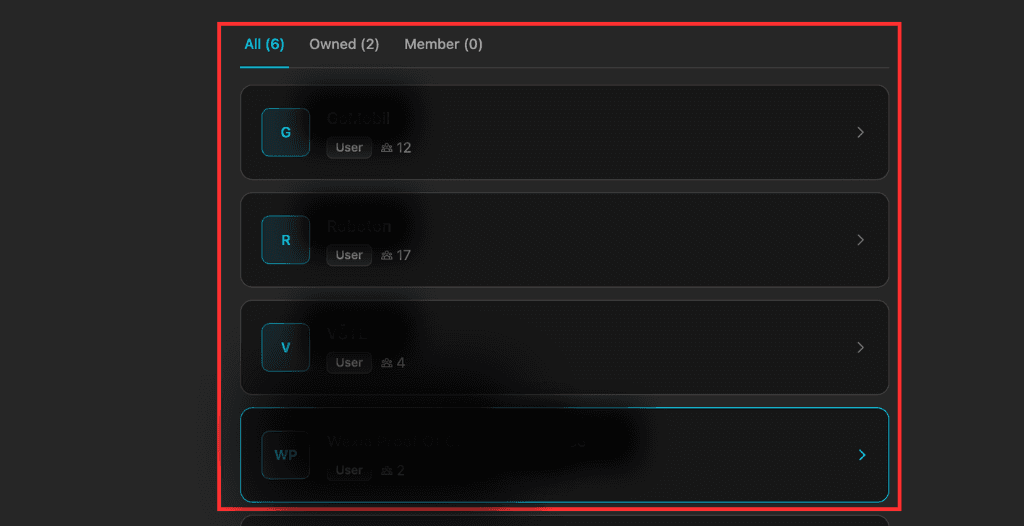 Po přihlášení se zobrazí seznam všech organizací, které máte ve svém účtu vytvořené.