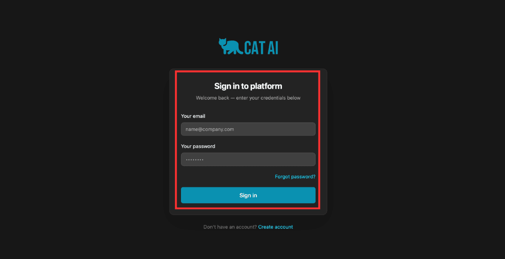 Nejprve se přihlaste do svého účtu v aplikaci Cat AI pomocí přihlašovacích údajů.