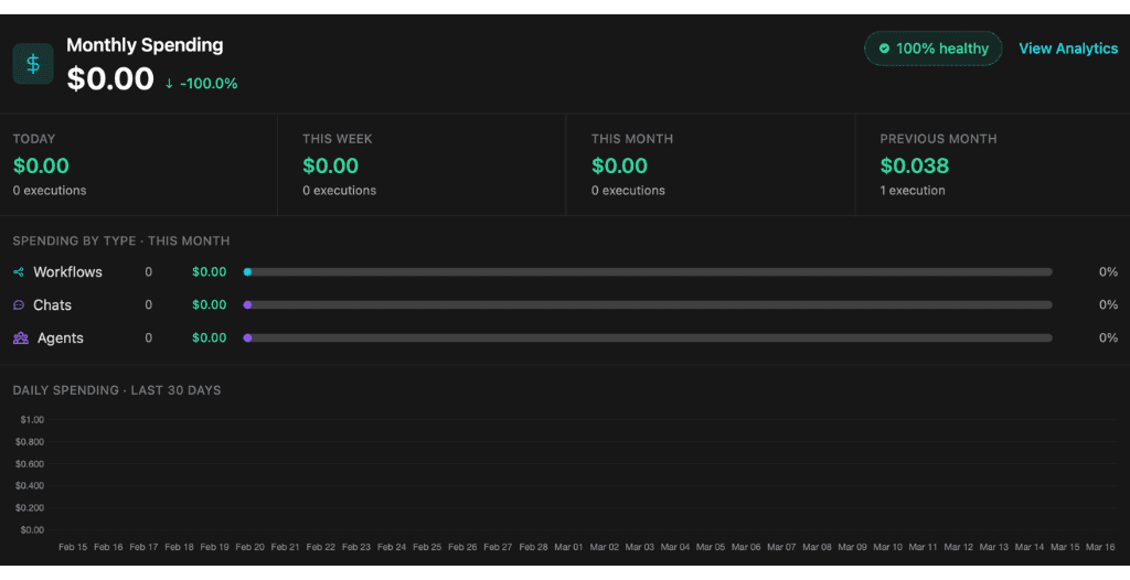 Kliknutím na vytvořenou organizaci se otevře Dashboard, kde uvidíte přehled nákladů a statistik, například kolik jednotlivé procesy stály.