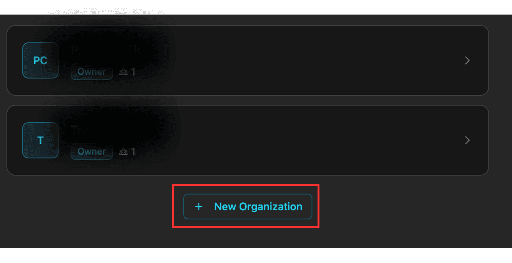 Pokud ještě nemáte žádnou organizaci vytvořenou, klikněte na tlačítko New Organization a vytvořte novou.